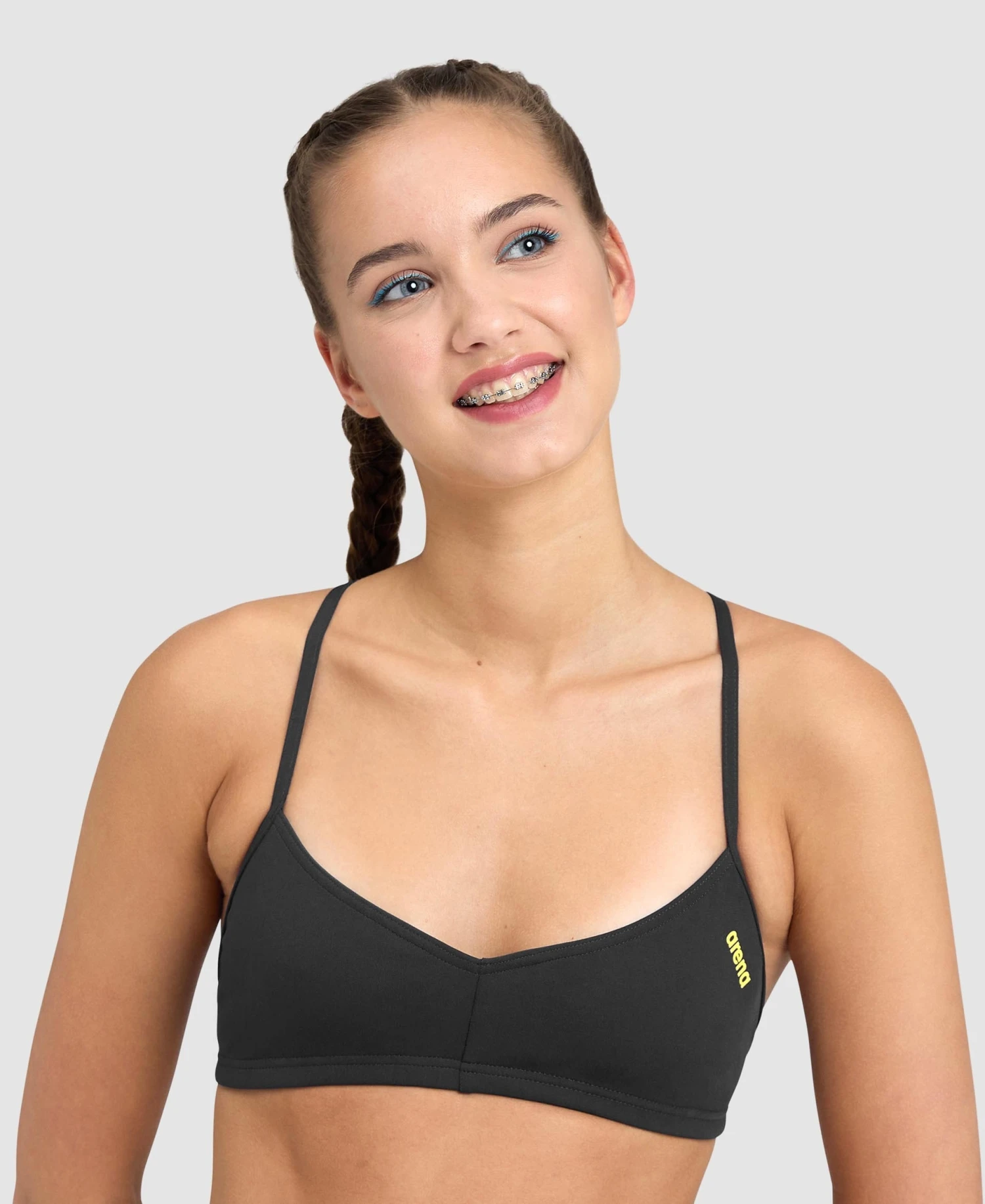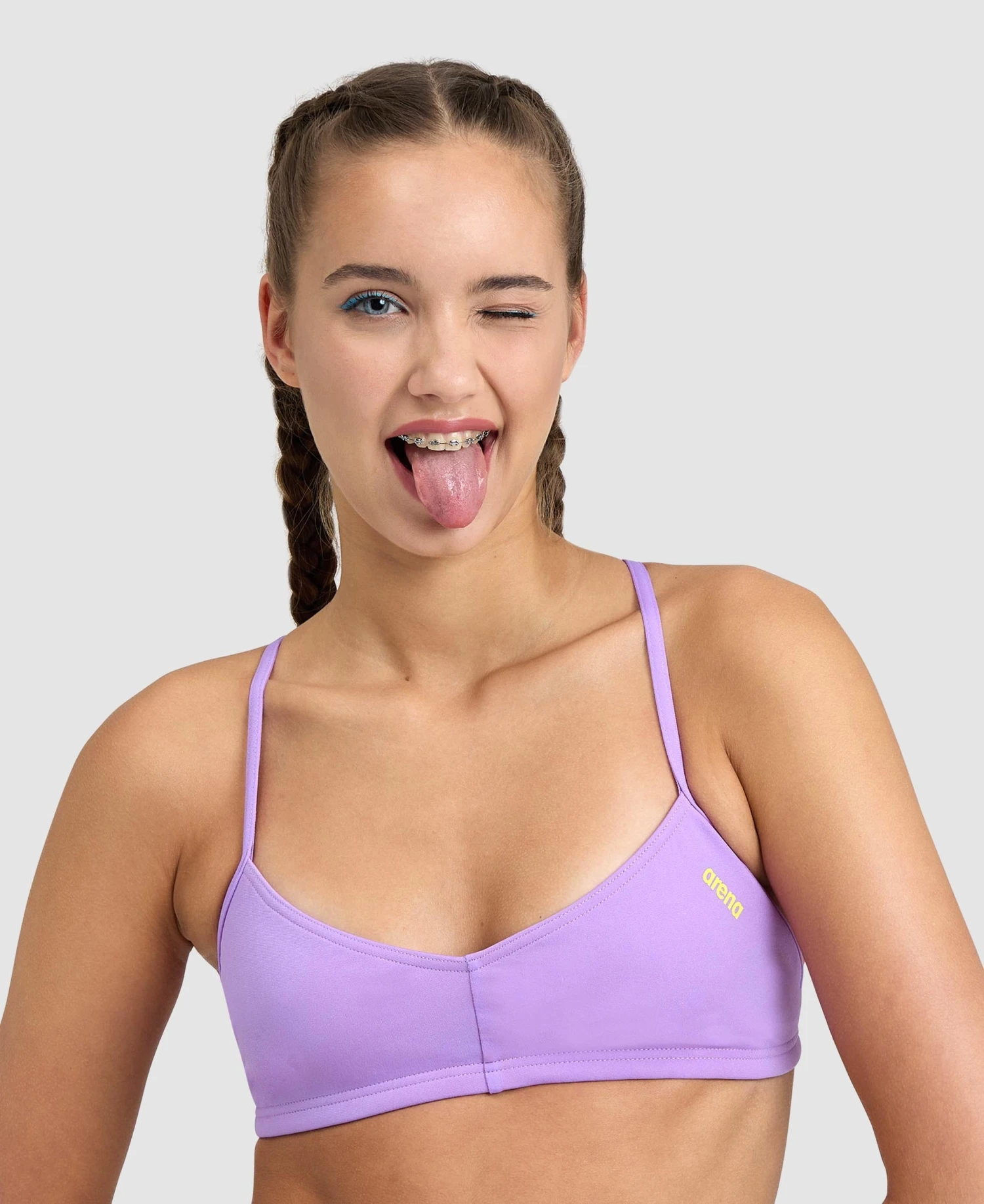 Equipped with inner ties for a secure fit and a comfortable front lining. The top pairs perfectly with the arena’s Free Brief, Real Brief and Unique Brief for a colourful mix&match look.