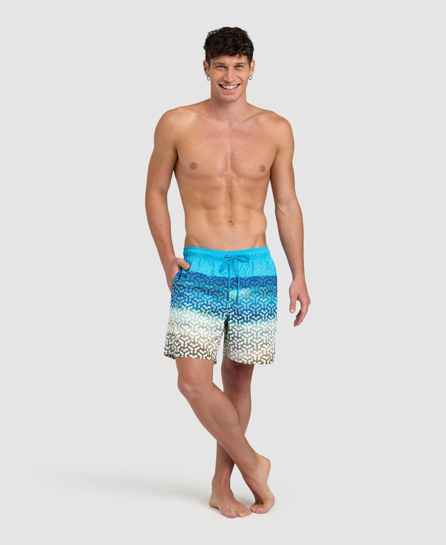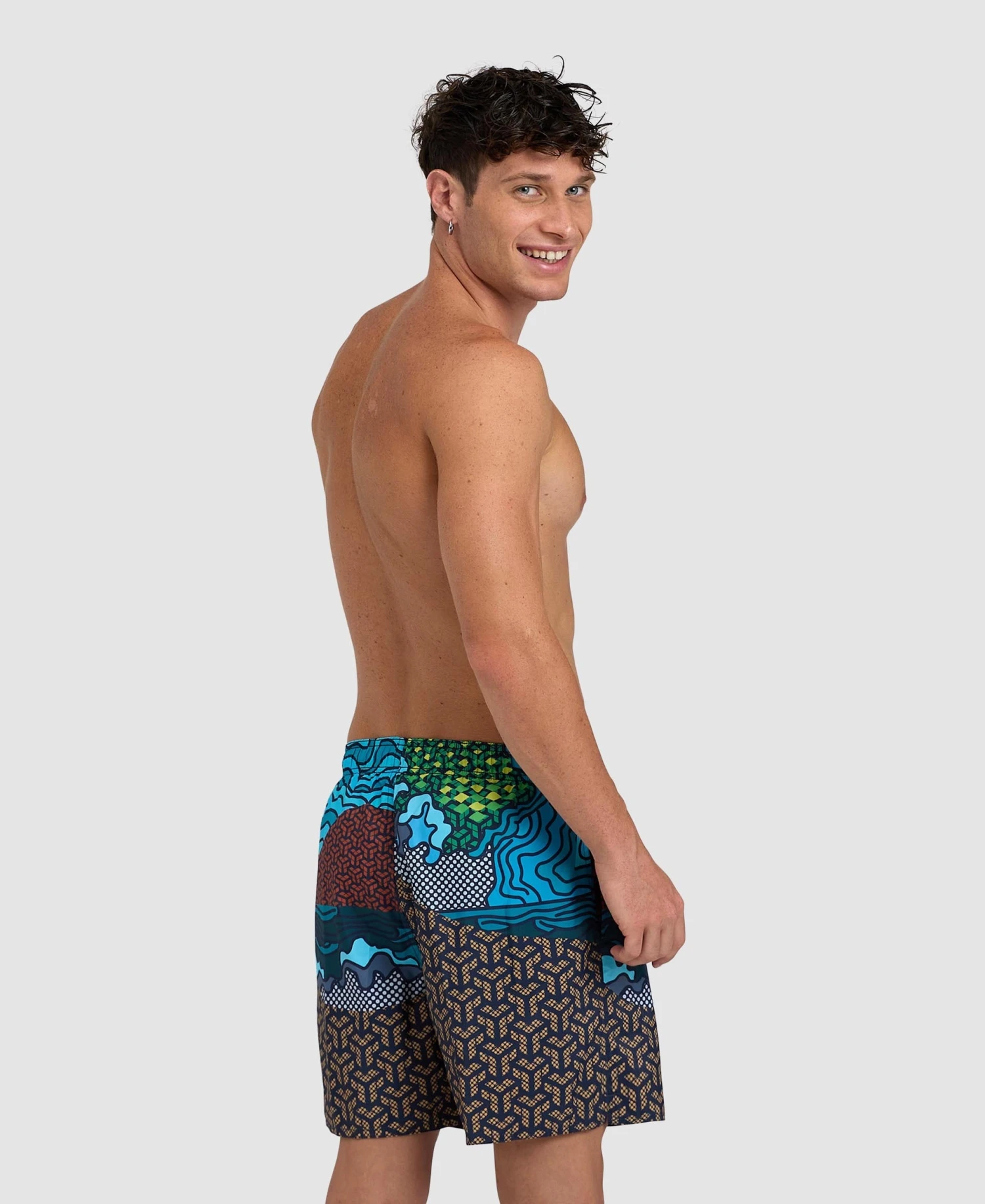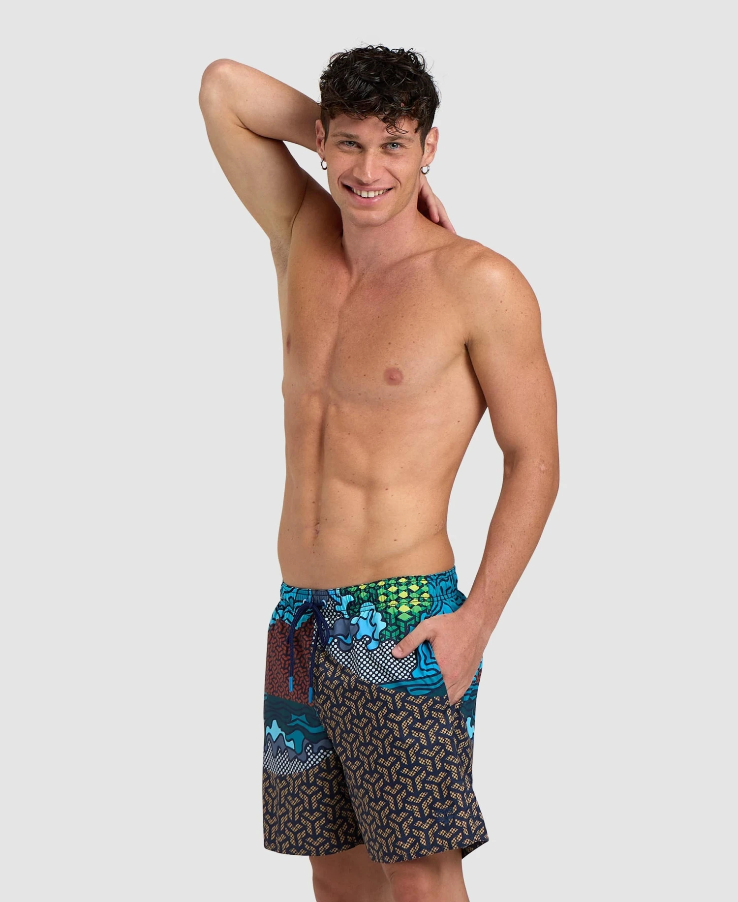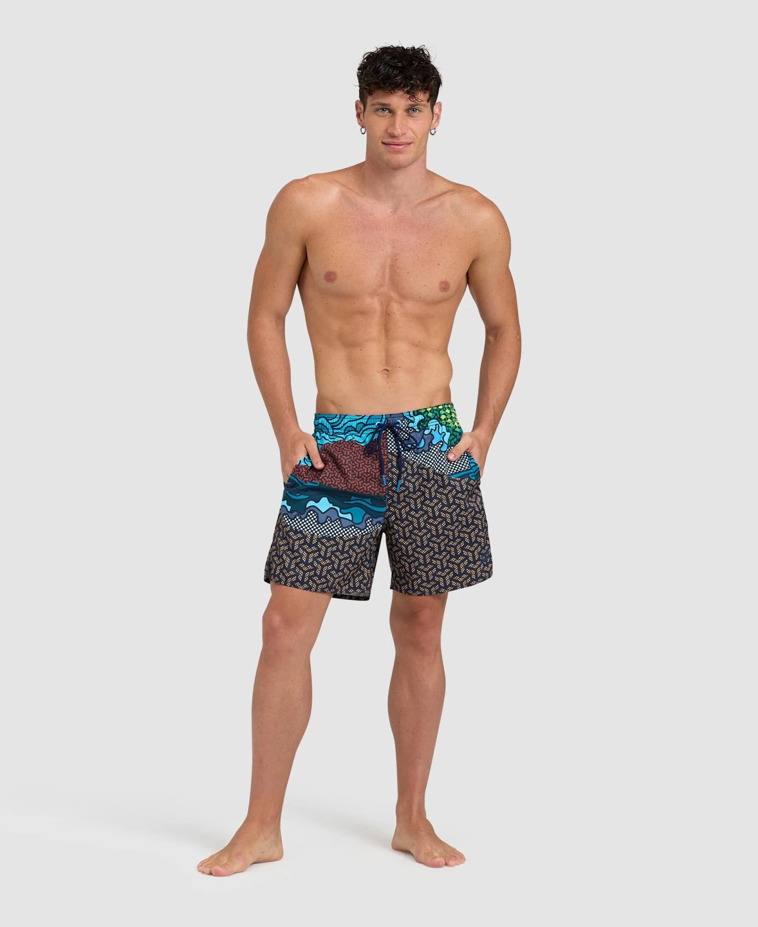 The vibrant prints celebrate arena’s connection with water. Made from a soft and quick-drying recycled fabric for outstanding comfort, these swim trunks are equipped with smart side pockets and a mesh inner brief. The adjustable external drawstring provides an excellent fit. Side length 41.5 cm.