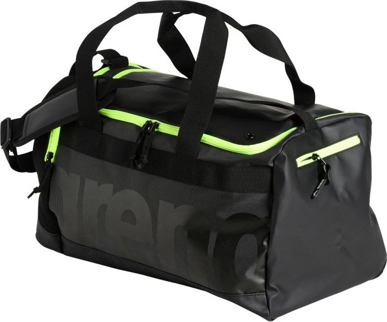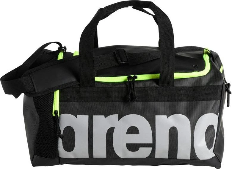 A spacious travel bag with a water-repellent coating, ideal for sports and leisure. Water repellent bottom, large main compartment and deep side pocket for wet clothes or shoes, breathable mesh panels for moisture control. Small side pocket, adjustable shoulder strap and padded handles.